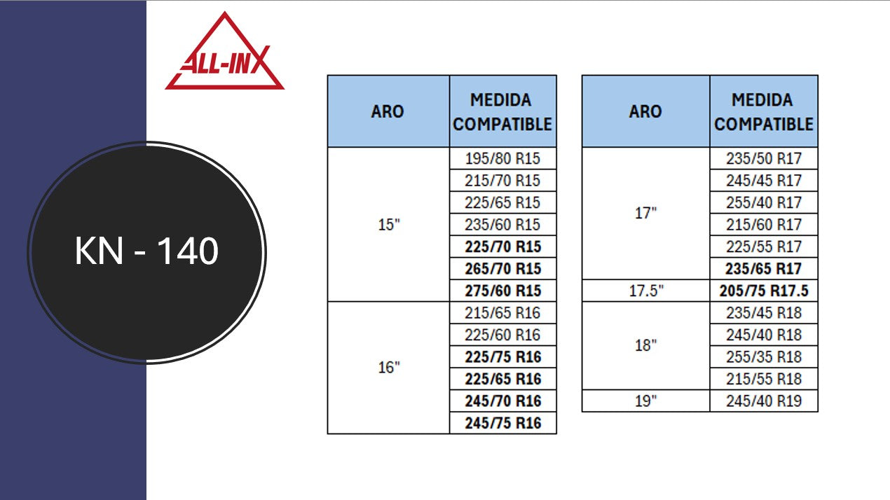 Estas cadenas para nieve y hielo KN140 ofrecen un montaje sencillo y rápido, diseñadas para neumáticos de entre 15 y 19 pulgadas. Su ajuste preciso garantiza una excelente tracción en condiciones invernales, mejorando la seguridad y el control del vehículo. Incluyen una práctica maleta para facilitar su almacenamiento y transporte. Ideales para conductores que buscan una solución confiable y eficiente para enfrentar caminos resbaladizos.
